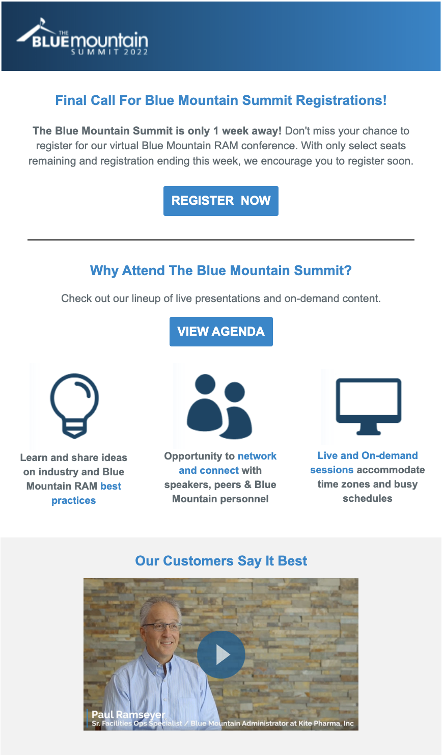 While managing multiple email campaigns, my work was able to successfully impact a variety of key performance indicators for these aforementioned campaigns. Campaigns regarding event registrations, product promotions, content efforts, and more saw an increase in opens, clicks, and website traffic, as well as a decrease in bounce rate, unsubscribes, etc.